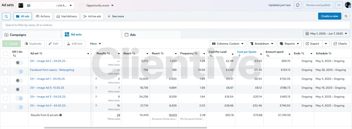 Creative fit. Local proof and service-specific angles reduced CPL (cost per lead) while increasing the ratio of quotes to clicks. We tested new ad strategies that turned out to be more engaging. Like more UGC and video.